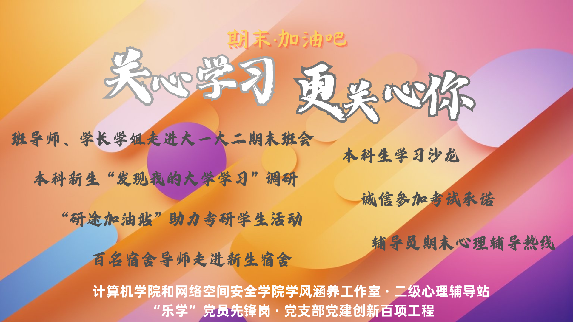 近日,皇冠网址-USDT网投娱乐城 和密码与网络空间安全皇冠网址-USDT网投娱乐城 举办“关心学习 更关心你”期末教育主题活动。活动主要针对新生和低年级学生,结合学业指导、诚信考试和心理健康教育等内容开展。